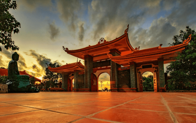 Với những nét đặc trưng trong kiến trúc như tháp chuông đồng to lớn, hay bức phù điêu được chạm khắc tinh xảo đặt giữa 70 bậc thang rồng, du khách sẽ không khỏi ngạc nhiên trước sự đồ sộ của công trình tôn giáo này. Dẫu ngày thường hay dịp lễ Tết, khuôn viên chùa đều tất bật đón đông đảo khách đến hành hương.